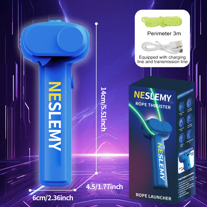· The NESLEMY Rope Launcher (Rope Thruster) is designed for maximum fun and durability. Made of high-quality soft yet strong materials, it features a compact, ergonomically designed body and a 6 cm long handle for a comfortable grip, regardless of hand size.